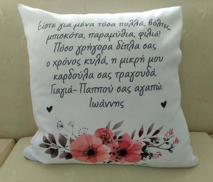 Λευκό μαξιλάρι με αφιέρωση για τη γιαγιά και τον παππού!
