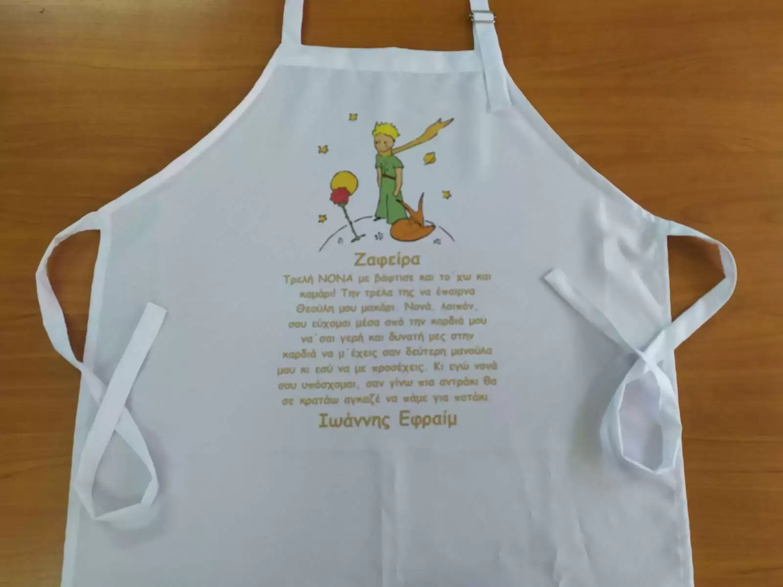 Εκτύπωση σε προσωποποιημένες ποδιές βάπτισης για τη νονά και το νονά σε σχέδια της επιλογής σας.