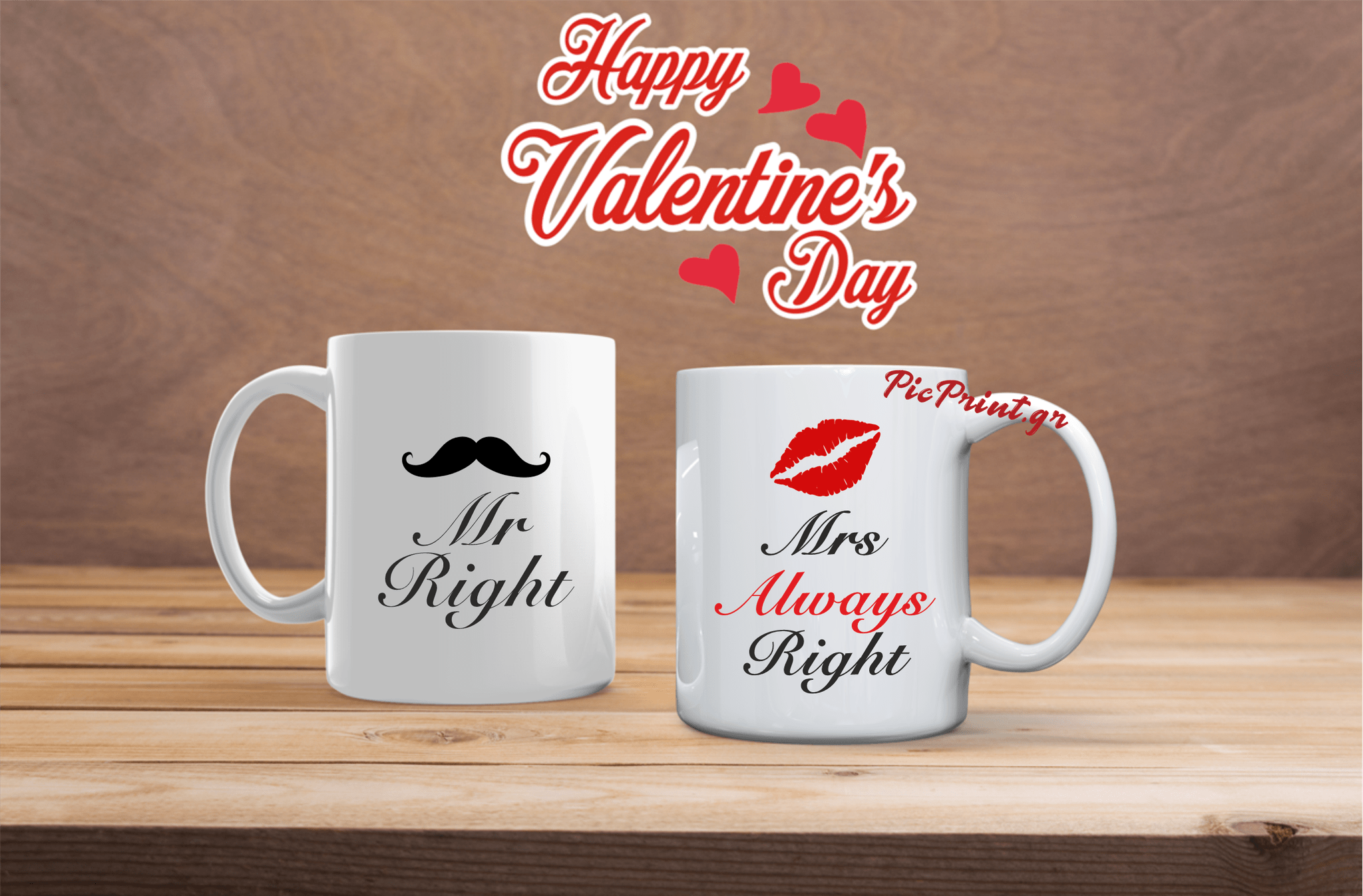 Σετ κούπες με αφιέρωση για τη γιορτή του Αγίου Βαλεντίνου. Ένα μοναδικό δώρο για ερωτευμένους.