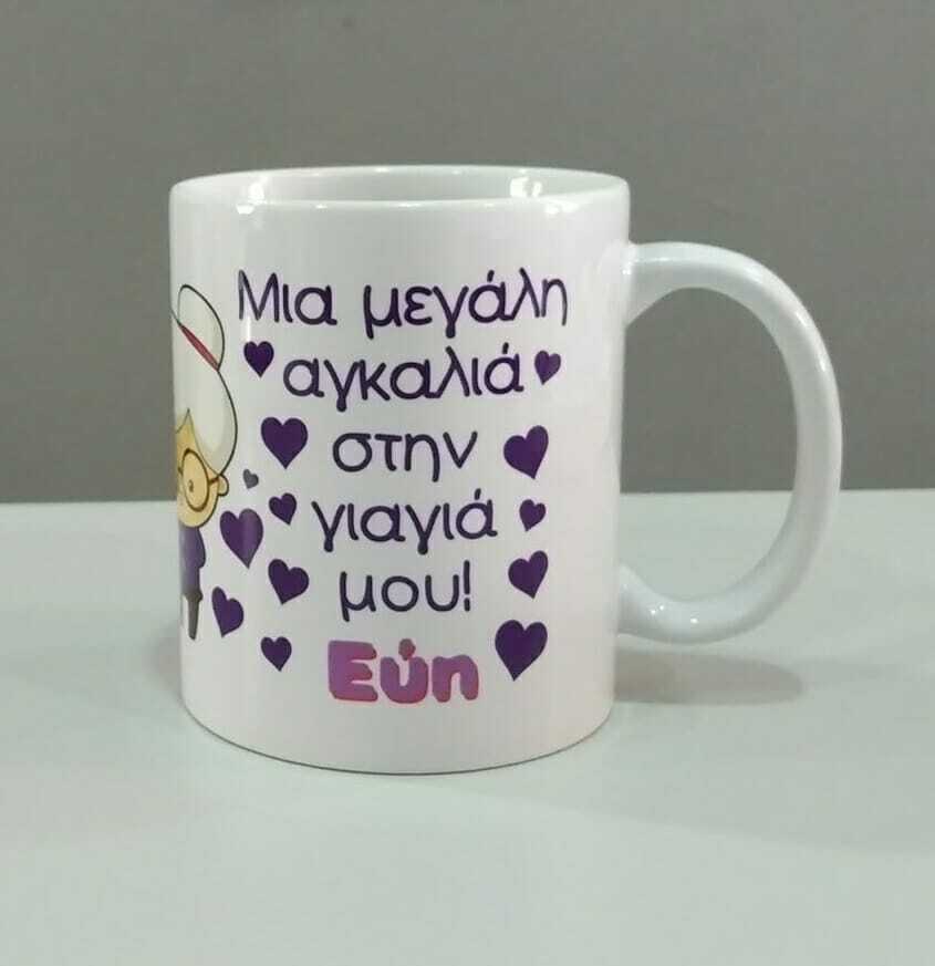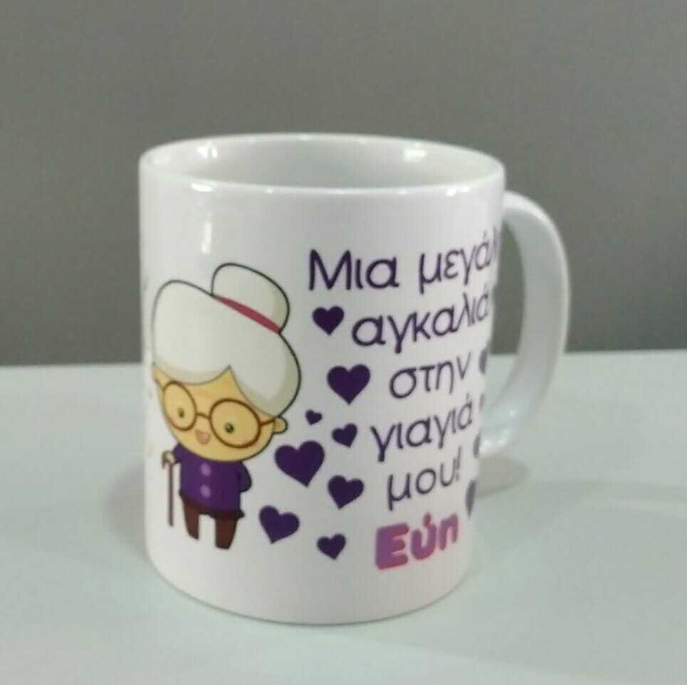Εκτύπωση σε κούπα με αφιέρωση, όνομα, φωτογραφία! Εκτυπώστε την αγαπημένη σας φωτογραφία και αφιέρωση και δημιουργήστε ένα μοναδικό δώρο για τη γιαγιά, τον παππού, τον θείο τη θεία, τον νονό, τη νονά.