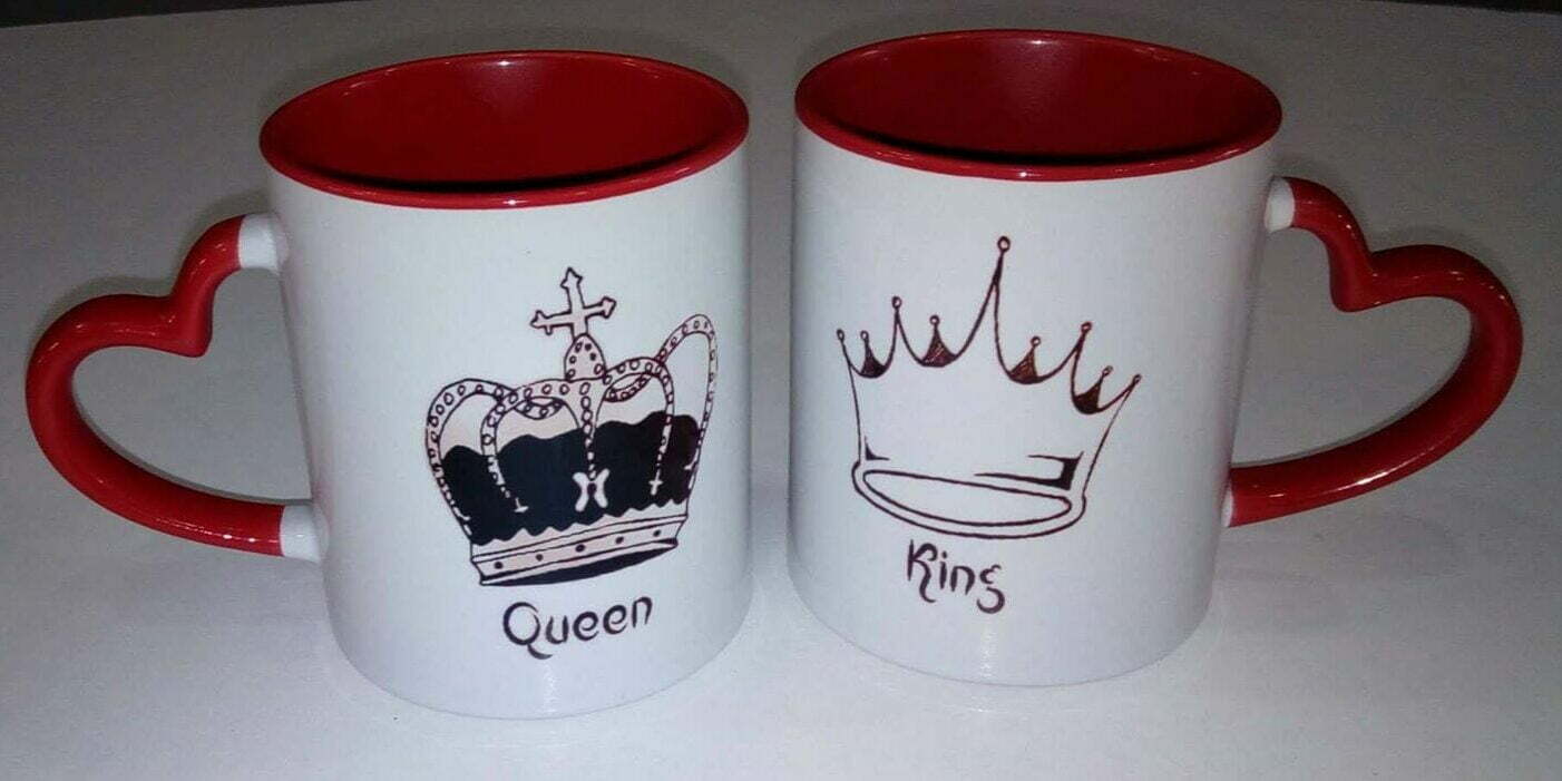 Σετ 2 κούπες με χερούλι καρδιά King-Queen,δώρο για ζευγάρια.Ένα πρωτότυπο δώρο για του Αγίου Βαλεντίνου .
