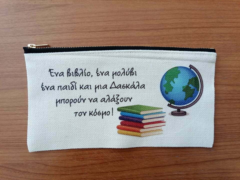 Λινό νεσεσέρ με τη  δική σας αφιέρωση για τη δασκάλα. Προσωποποιημένο ιδιαίτερο δώρο για τη δασκάλα με αφιέρωση όνομα.