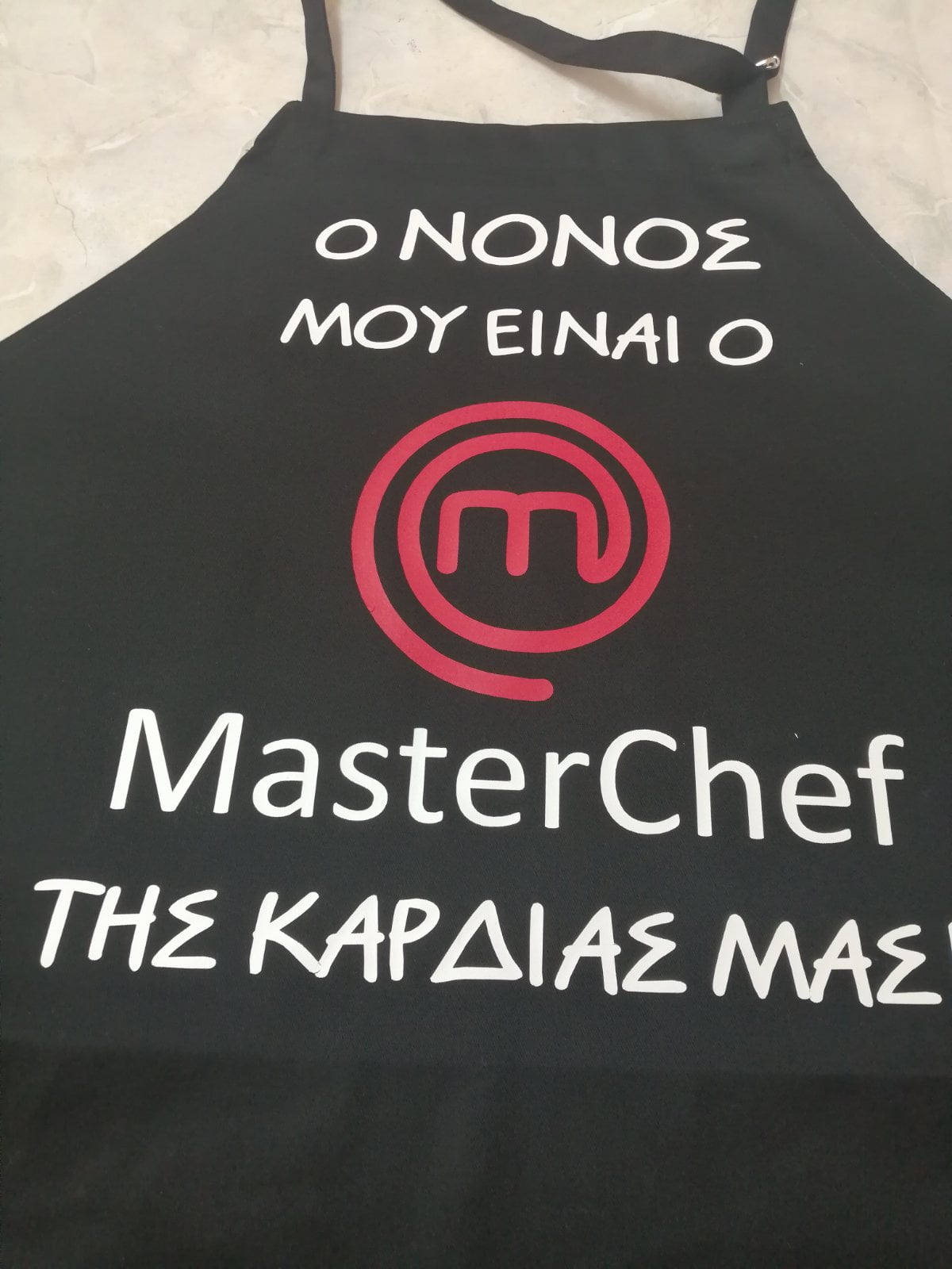 Μαύρη ποδιά με εκτύπωση .