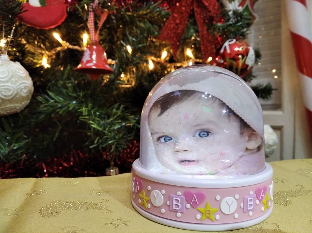 Παιδική χιονόμπαλα δύο όψεων με τη φωτογραφία του μωρού. Ένα ιδιαίτερο δώρο για νεογέννητα.