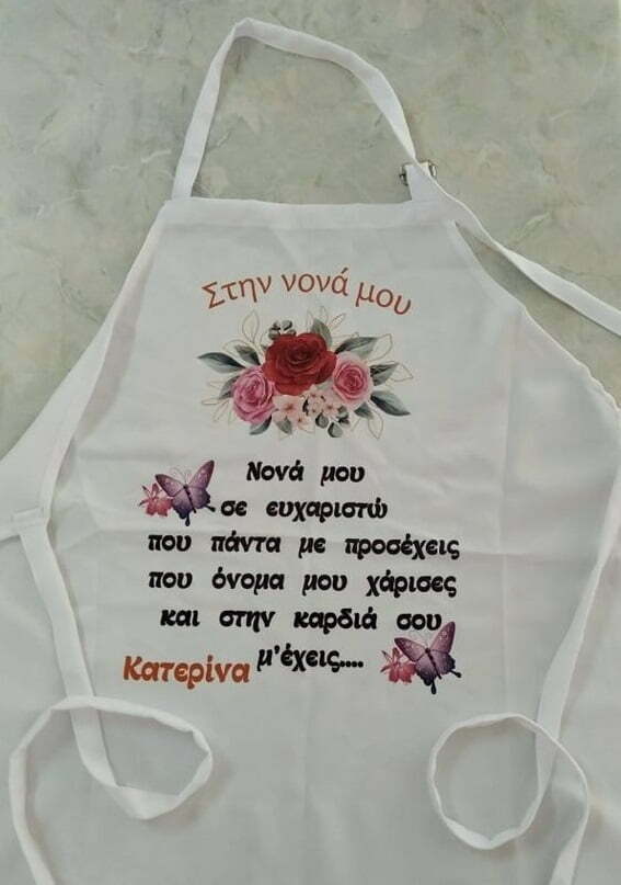 Εκτύπωση σε προσωποποιημένες ποδιές βάπτισης για τη νονά και το νονά σε σχέδια της επιλογής σας. Ποδιά νονάς με θέμα τα λουλούδια