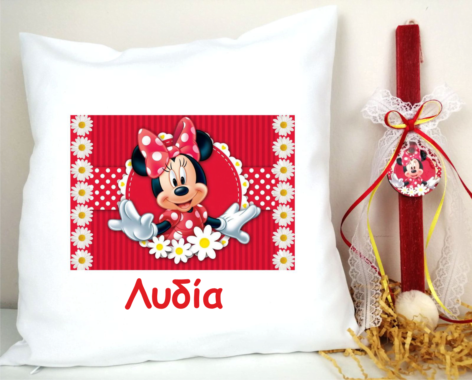 Σετ πασχαλινή λαμπάδα minnie mouse με μπρελόκ και μαξιλαράκι με όνομα.Φτιάξτε μια ξεχωριστή αρωματική Πασχαλινή λαμπάδα με μπρελόκ minnie mouse και μαξιλαράκι.Μια μοναδική λαμπάδα με την αγαπημένη Minnie mouse.